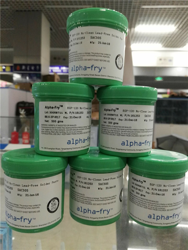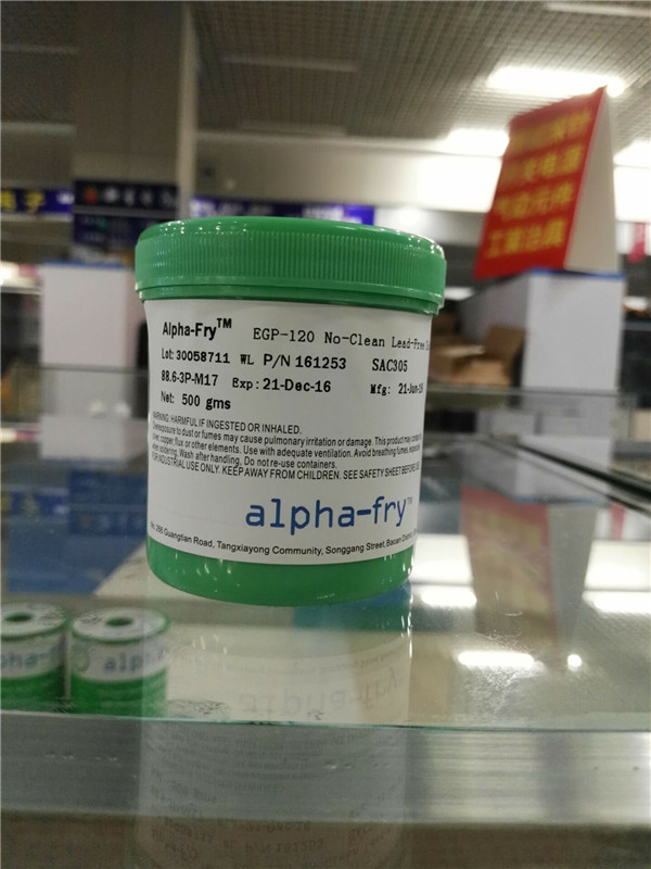 產品說明:Alpha-Fry EGP-130 焊膏的助焊劑系統是針對精密間距無鉛應用而特別配方的免清洗 REL0 類產品,在連續表面貼裝印刷時可保證穩定的粘性和觸變性。產品配方包括 SAC305(96.5%Sn/3.0%Ag/0.5%Cu)和 SAC0307(99%Sn/0.3%Ag/0.7%Cu)等合金配方。該產品還具有優異的耐高溫預熱性、抗超精密間距焊盤溶解以及降低焊球缺陷等屬性